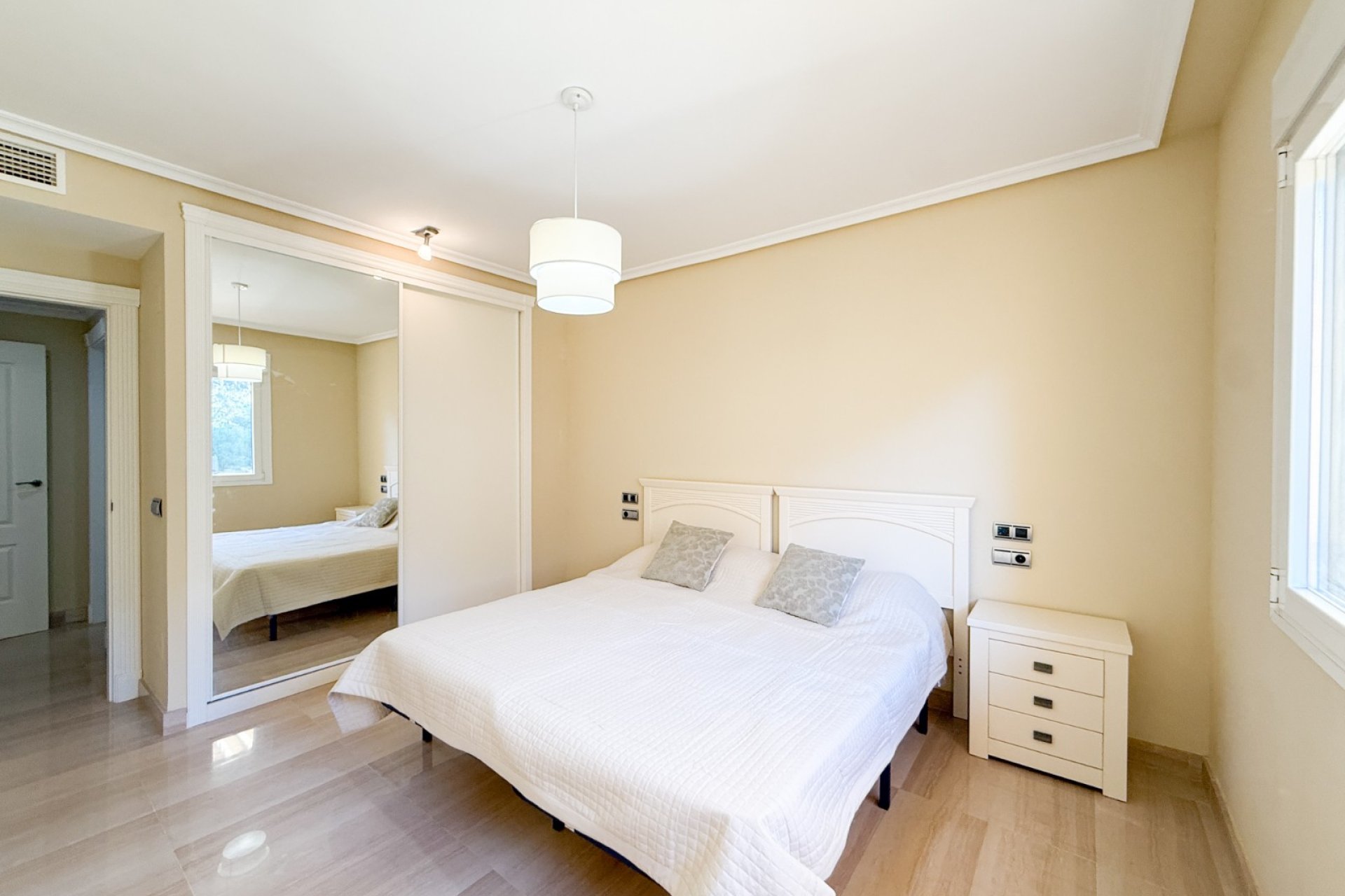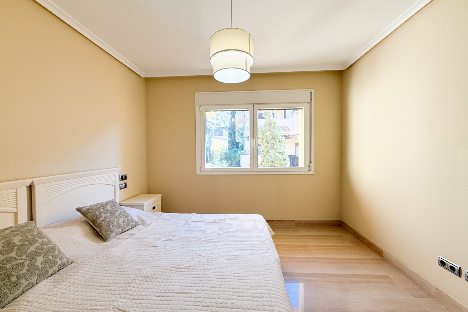 Nieruchomość posiada 2 przestronne sypialnie i 2 łazienki, rozmieszczone na ponad 100 m² powierzchni. Oferuje oddzielną kuchnię oraz jasny salon z jadalnią z wyjściem na taras.